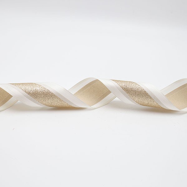 ΚΟΡΔΕΛΑ ΚΡΕΜ ΣΑΤΕΝ, ΜΕ ΣΑΜΠΑΝΙ GLITTER, 914x6.3cm