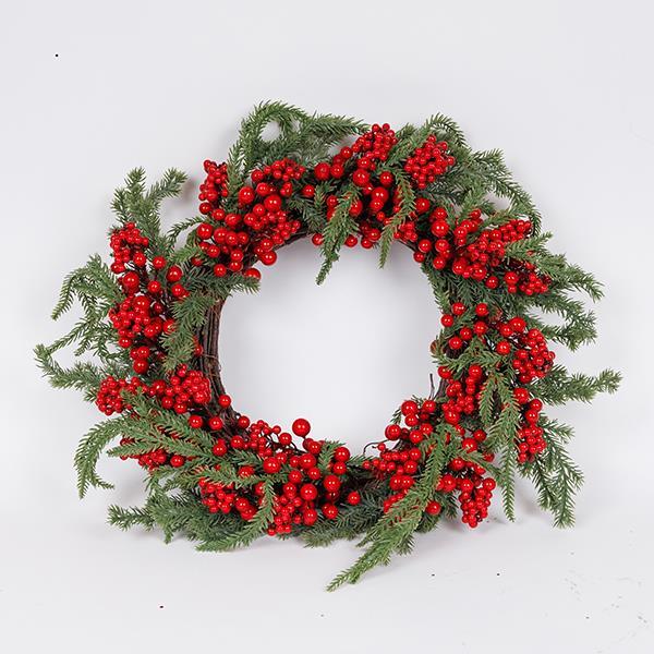 ΣΤΕΦΑΝΙ ΜΕ ΚΟΚΚΙΝΑ BERRIES ΚΑΙ ΚΛΑΔΙ ΕΛΑΤΟΥ, 50cm