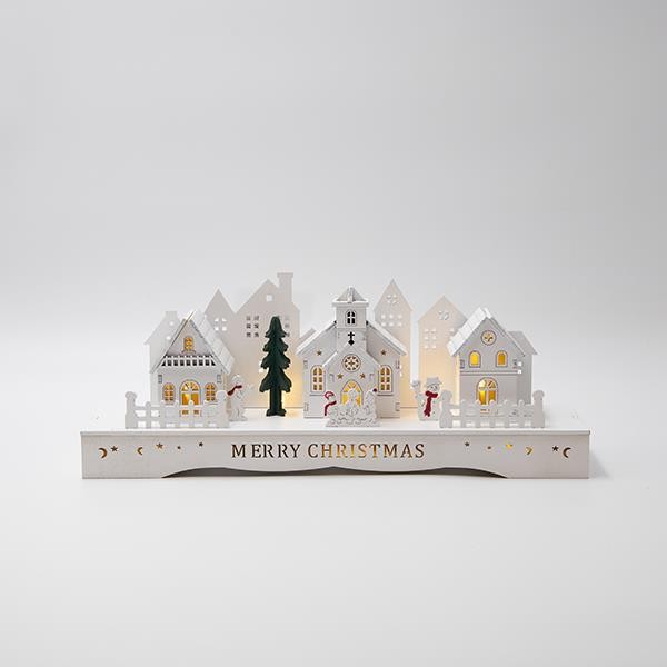 ΞΥΛΙΝΗ ΠΑΡΑΣΤΑΣΗ ΜΕ ΣΠΙΤΑΚΙΑ, ΛΕΥΚΗ, ΦΩΤΙΖΟΜΕΝΗ, TIMER, ΜΠΑΤΑΡΙΑΣ, 33x8x12.5cm